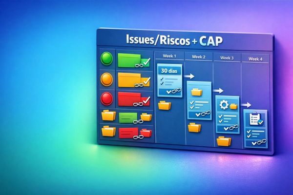 9) Issues/Riscos + CAP (fechamento com evidência)