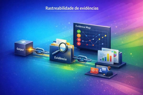 2) Rastreabilidade de evidências (outputs → evidência → relatório)